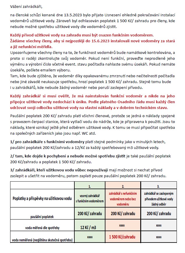 do 31.12.2025 – individuálně – 2. část členských poplatků (dle výměry ploch a spotřeby vody)